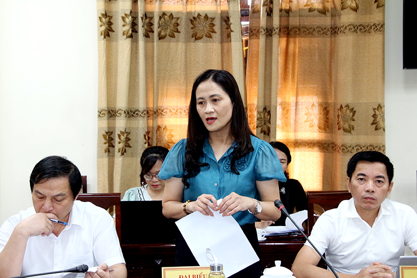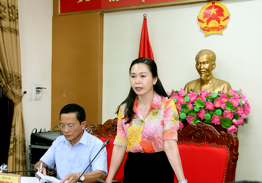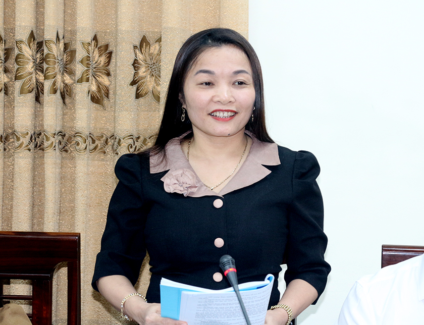 Trưởng ban Văn hóa - Xã hội HĐND tỉnh Đào Thị Anh Nga phát biểu tại cuộc làm việc.