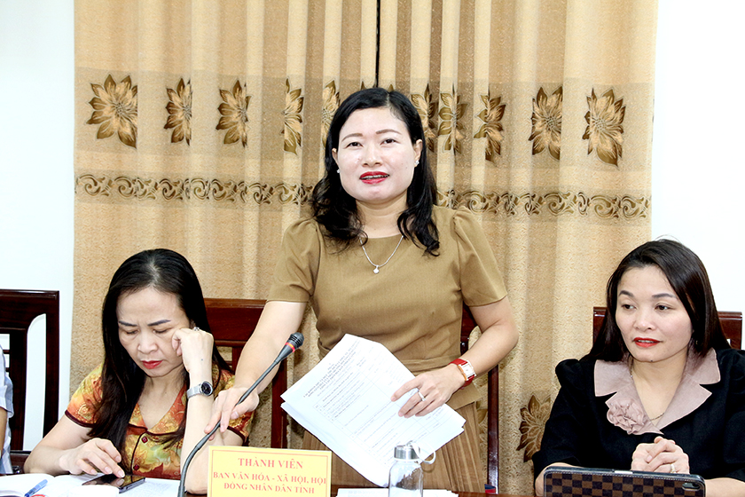 Phát biểu tại cuộc làm việc, Phó Chủ tịch HĐND tỉnh Trần Văn Kỳ và Trưởng ban Văn hóa - Xã hội HĐND tỉnh Đào Thị Anh Nga đề nghị các cơ quan soạn thảo tiếp thu đầy đủ các ý kiến phát biểu; tiếp tục rà soát, hoàn thiện nội dung các dự thảo tờ trình, Nghị quyết và tiến hành rà soát các văn bản quy phạm pháp luật đã ban hành để tránh chồng chéo, vi phạm các quy định.