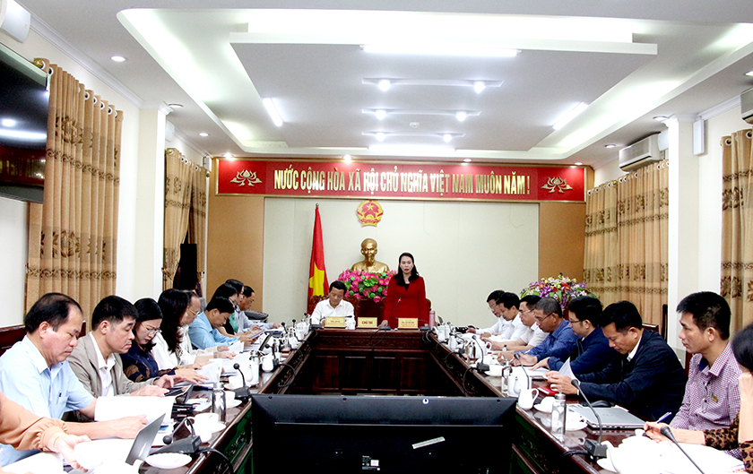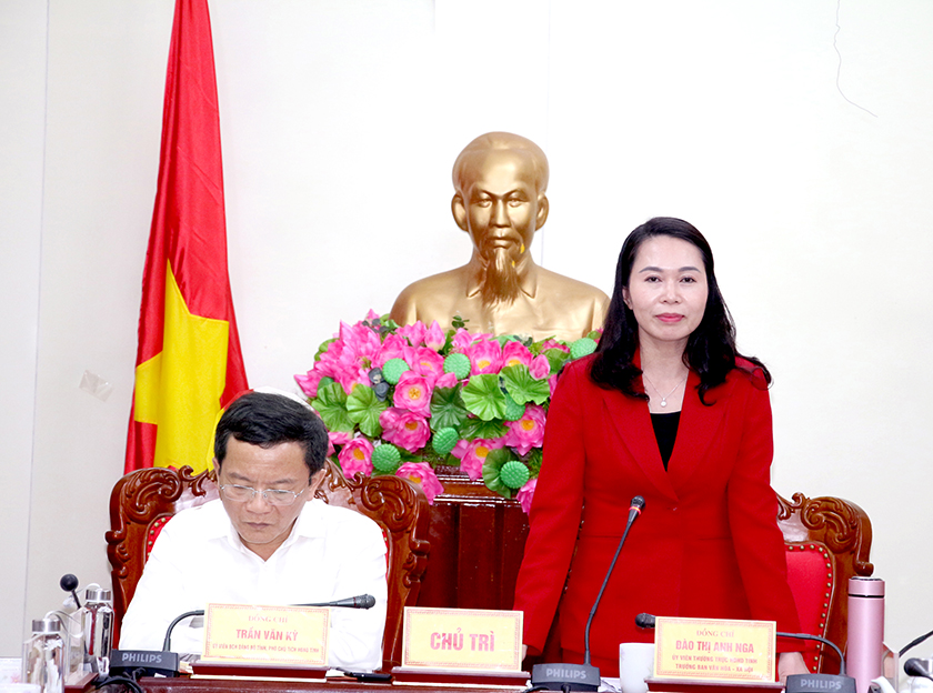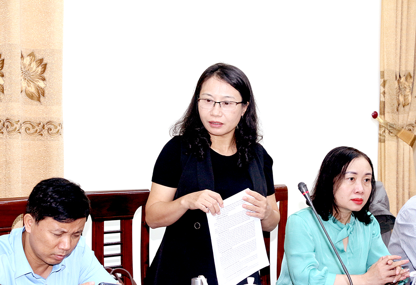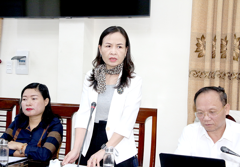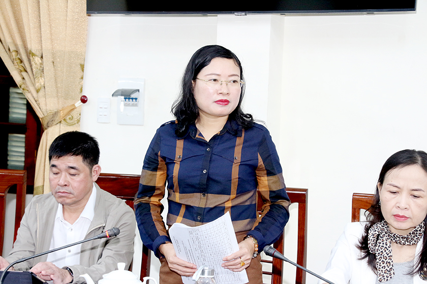 Trưởng ban Văn hóa - Xã hội HĐND tỉnh Đào Thị Anh Nga phát biểu tại cuộc làm việc.
