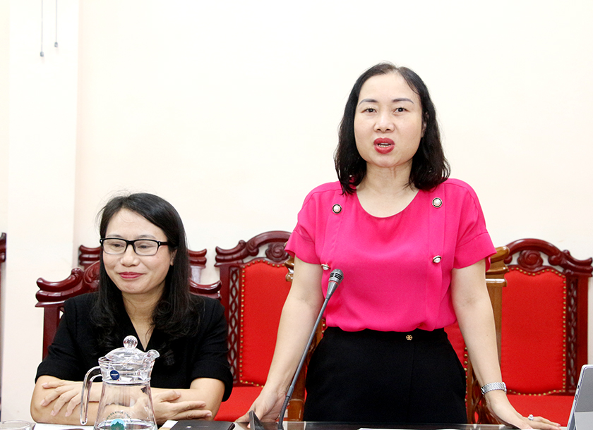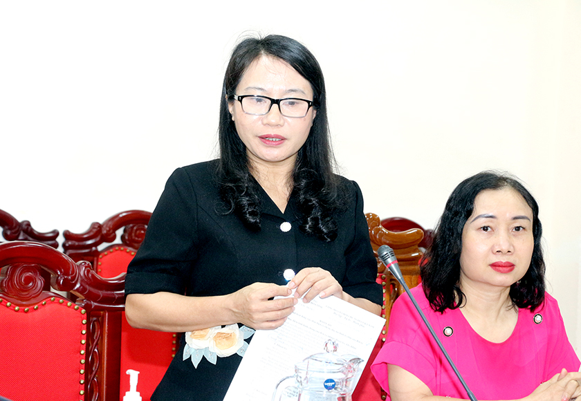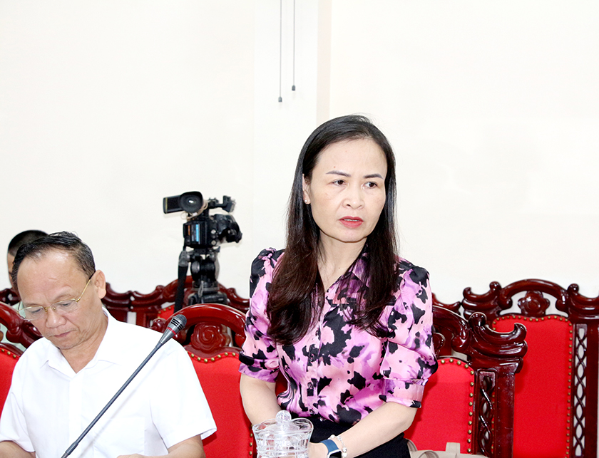 Trưởng ban Văn hóa - Xã hội HĐND tỉnh Đào Thị Anh Nga phát biểu tại cuộc làm việc.