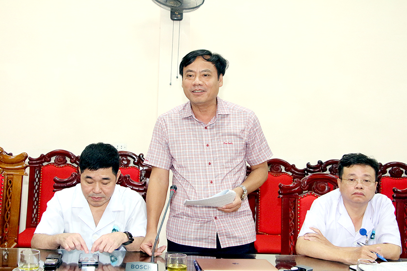 Phó Giám đốc Sở Y tế Lê Chánh Thành phát biểu tại cuộc làm việc.
