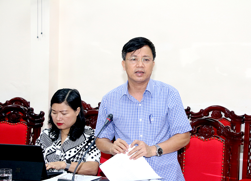 Giám đốc Bệnh viện Đa khoa tỉnh Hoàng Quang Trung báo cáo tình hình hoạt động, việc thực hiện cơ chế tự chủ tại đơn vị .