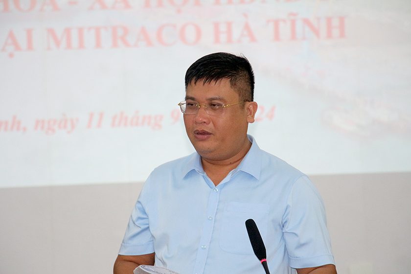 Tổng giám đốc Tổng công ty Khoáng sản và Thương mại Hà Tĩnh - CTCP Lê Viết Thảo báo cáo việc thực hiện chế độ chính sách cho người lao động.