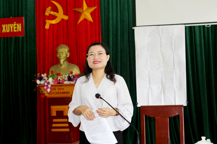 Trưởng ban Văn hóa - Xã hội HĐND tỉnh Nguyễn Thị Nguyệt phát biểu tại thị trấn Cẩm Xuyên