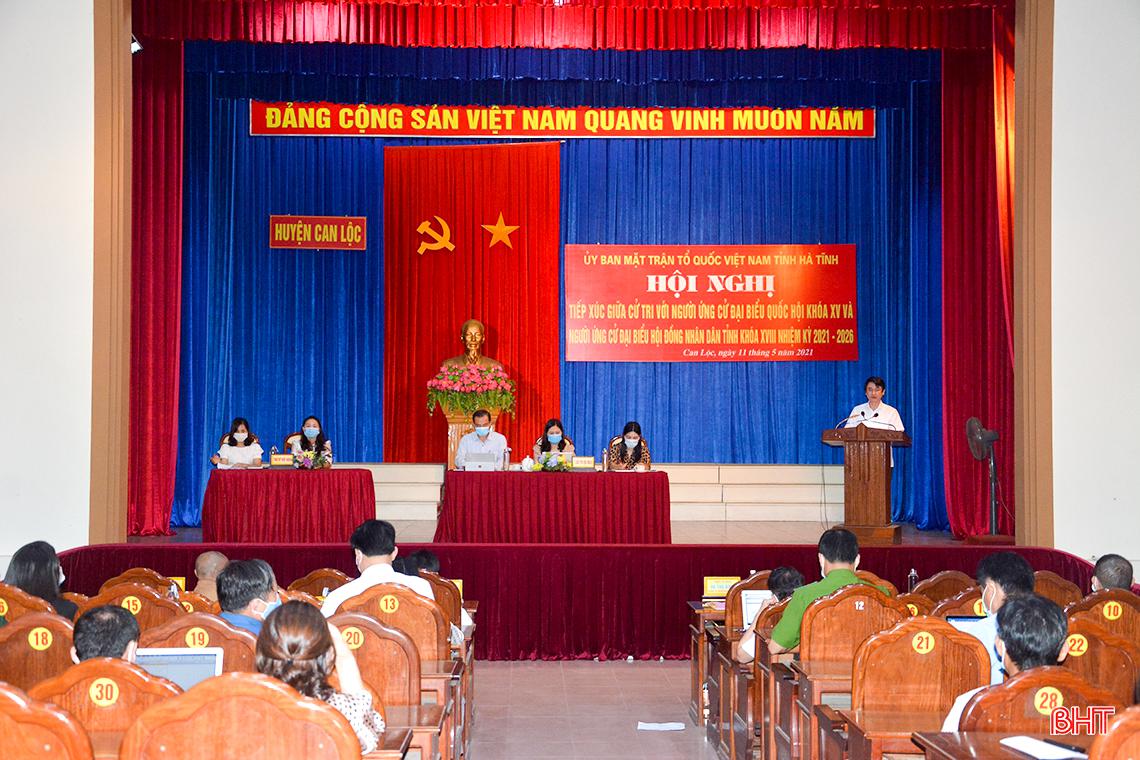 4 ứng cử viên ĐBQH khóa XV và 8 ứng cử viên đại biểu HĐND tỉnh khóa XVIII tại đơn vị bầu cử huyện Can Lộc (Hà Tĩnh) hứa sẽ đem hết khả năng, tâm huyết của mình đóng góp vào tiến trình đổi mới của Quốc hội, HĐND tỉnh, góp phần đưa Hà Tĩnh sớm trở thành tỉnh khá của cả nước.