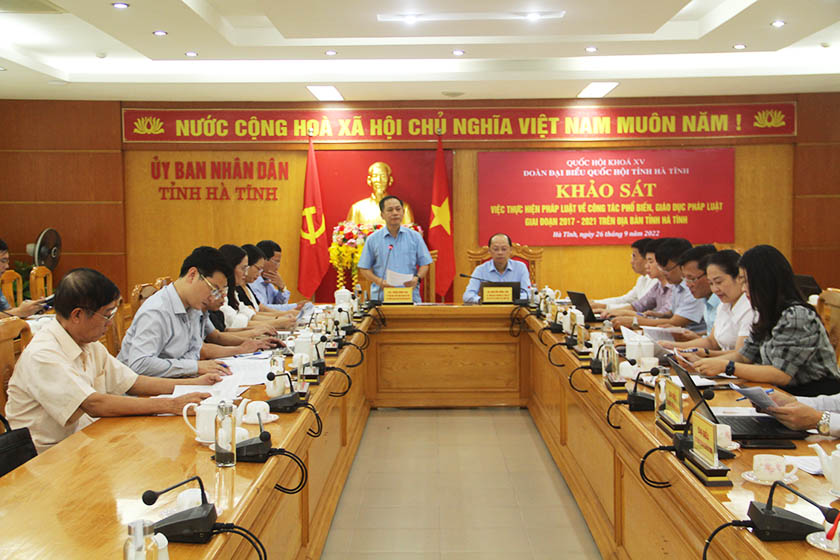 Sáng 22/8, Đoàn ĐBQH Quốc hội tỉnh do Phó Trưởng đoàn chuyên trách Đoàn ĐBQH tỉnh Trần Đình Gia dẫn đầu tiến hành khảo sát và làm việc với huyện Hương Sơn và Đồn Biên phòng Cửa khẩu Quốc tế Cầu treo về “Việc thực hiện pháp luật về công tác tuyên truyền, phổ biến giáo dục pháp luật (PBGDPL) giai đoạn 2017-2021” trên địa bàn.