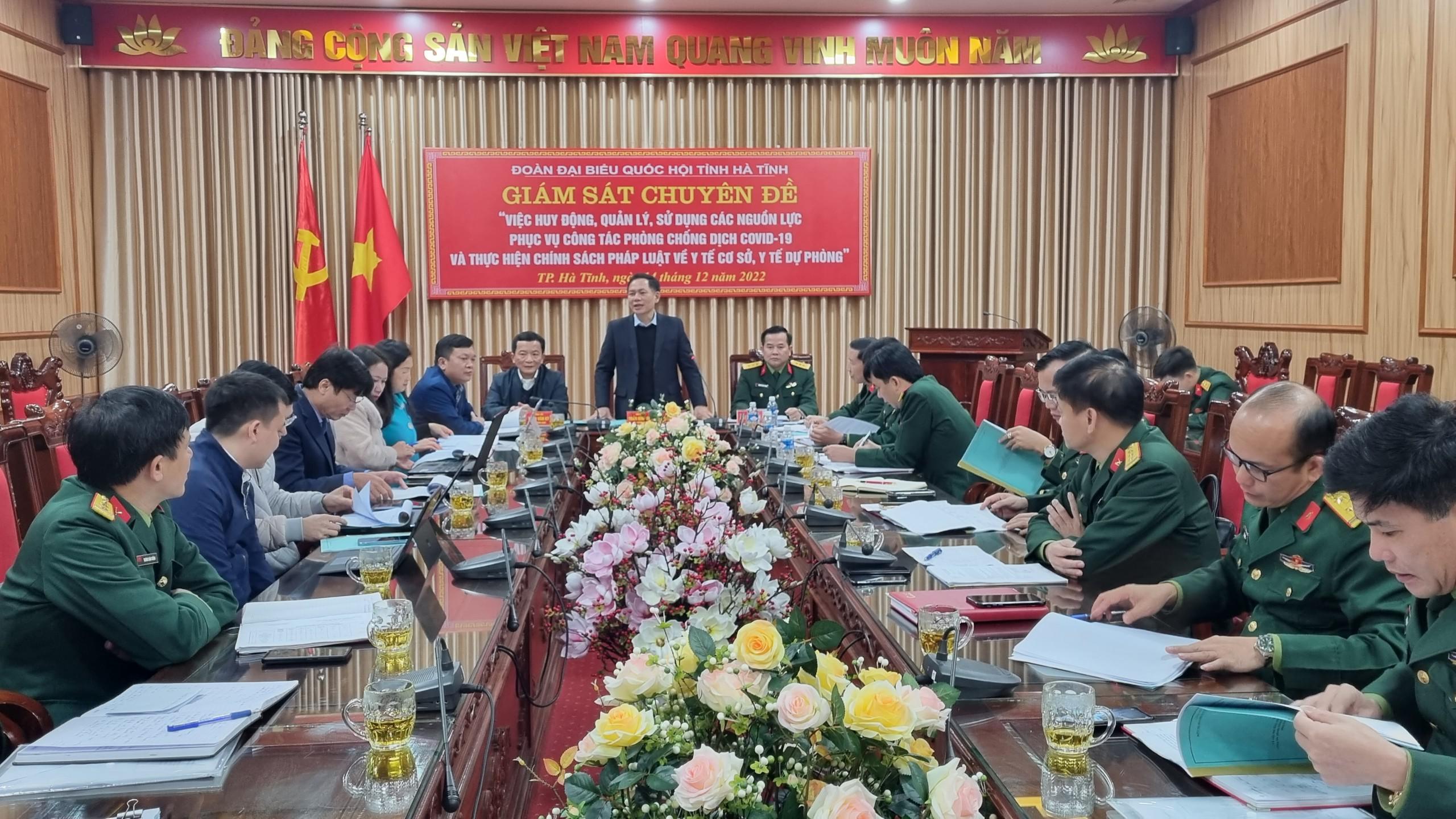 Chiều ngày 08/12, Đoàn ĐBQH tỉnh Hà Tĩnh phối hợp với Thường trực HĐND tỉnh tổ chức giám sát chuyên đề về “Việc huy động, quản lý, sử dụng các nguồn lực phục vụ công tác phòng, chống dịch Covid-19 từ ngày 01/01/2020 - 31/12/2022; việc thực hiện chính sách, pháp luật về y tế cơ sở, y tế dự phòng từ ngày 01/01/2018 - 31/12/2022” tại huyện Can Lộc.