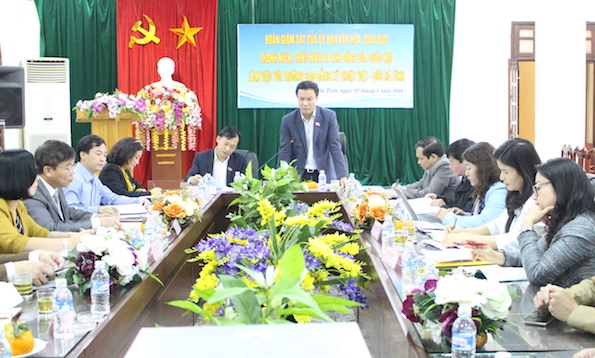 Sáng ngày 28/2, Đoàn giám sát của Ủy ban Văn hóa, Giáo dục, Thanh niên, Thiếu niên và Nhi đồng của Quốc hội do đồng chí Triệu Thế Hùng – phó Chủ nhiệm Ủy ban Văn hóa, Giáo dục, Thanh niên, Thiếu niên và Nhi đồng của Quốc hội làm trưởng đoàn đã có buổi làm việc với lãnh đạo UBND tỉnh. Tham dự buổi làm việc với đoàn có đồng chí Đặng Quốc Khánh – UV Dự khuyết TW Đảng – Phó bí thư tỉnh ủy – Chủ tịch UBND tỉnh – Trưởng Đoàn đại biểu Quốc hội tỉnh Hà Tĩnh, đồng chí Dương Tất Thắng – UVBTV tỉnh ủy – Phó chủ tịch UBND tỉnh và lãnh đạo các cơ quan, ban, ngành, đơn vị liên quan.
