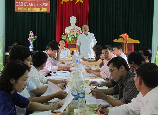 Ngày 8/8/2013, Đoàn ĐBQH tỉnh đã làm việc với BQL rừng phòng hộ Hồng Lĩnh về tình hình quản lý, sử dụng đất tại các nông, lâm trường quốc doanh trên địa bàn tỉnh Hà Tĩnh. Tham dự có các vị Đại biểu Quốc hội, đại diện các Sở TN-MT và NN&PTNN, đại diện các xã có rừng thuộc quản lý của Ban cùng Thường trực HĐND, lãnh đạo UBND Thị xã Hồng Lĩnh.