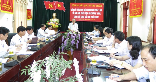 Ngày 25.3, Đoàn ĐBQH tỉnh tiến hành giám sát tại huyện Hương Sơn về việc thực hiện chính sách pháp luật về bảo đảm chất lượng và chương trình sách giáo khoa giáo dục phổ thông. Tham gia đoàn giám sát có các đại biểu Quốc hội tỉnh, đại diện lãnh đạo các sở: Giáo dục - Đào tạo, Kế hoạch - Đầu tư, Tài chính, Xây dựng, Tài nguyên - Môi trường. Đồng chí Trần Tiến Dũng, Phó trưởng đoàn ĐBQH tỉnh làm trưởng đoàn.