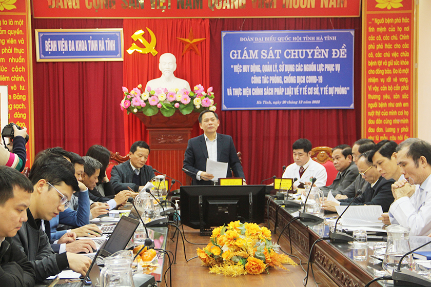 Phát biểu tại cuộc làm việc, Phó Trưởng đoàn chuyên trách Đoàn ĐBQH tỉnh Trần Đình Gia đánh giá cao vai trò của BVĐK tỉnh trong huy động, quản lý, sử dụng các nguồn lực phục vụ công tác phòng, chống dịch COVID-19; tham mưu cho ngành và tỉnh nhiều giải pháp hiệu quả về phòng, chống dịch. Qua kết luận của các đoàn thanh tra, kiểm tra, kiểm toán cho thấy, đến nay, bệnh viện đã thực hiện tốt việc quản lý, sử dụng các nguồn lực, không để xảy ra các sai phạm nghiêm trọng. Đồng thời, ghi nhận, đánh giá cao các ý kiến đề xuất xác đáng của bệnh viện liên quan đến các cơ chế, chính sách trong phòng, chống dịch, nâng cao chất lượng khám chữa bệnh... Đề nghị bệnh viện phối hợp với thư ký đoàn giám sát để tổng hợp, hoàn thiện báo cáo trình Quốc hội.