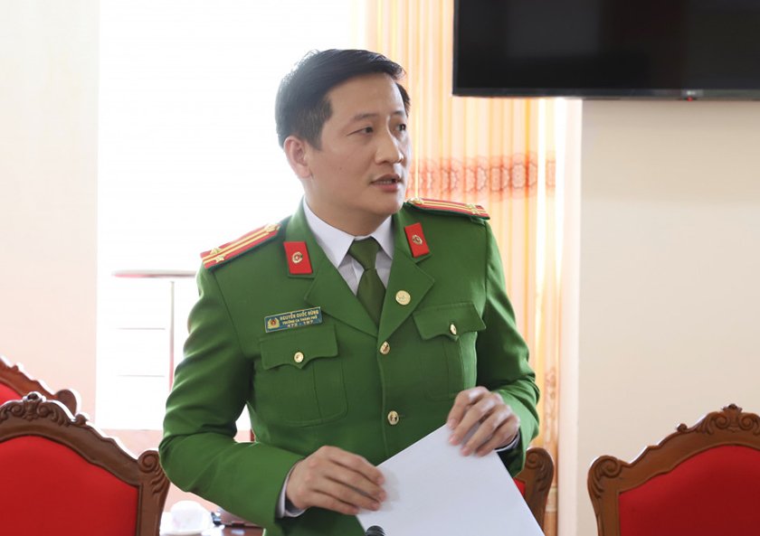 | Đại tá Lê Khắc Thuyết, UVBTV Tỉnh ủy, Giám đốc Công an tỉnh và đồng chí Trần Đình Gia, Tỉnh ủy viên, Phó trưởng Đoàn Đại biểu Quốc hội tỉnh chủ trì hội nghị |