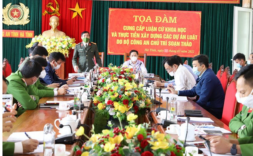 Đặt vấn đề tại buổi tọa đàm, Đại tá Lê Khắc Thuyết, Giám đốc Công an tỉnh nhấn mạnh, tọa đàm nhằm báo cáo, trao đổi về các luận cứ khoa học, thực tiễn về việc xây dựng Dự án Luật Lực lượng tham gia bảo vệ ANTT cơ sở; Luật TTAGTT đường bộ; Luật sửa đổi bổ sung một số điều của Luật CAND năm 2018. Trong đó, tập trung phân tích, làm rõ cơ sở thực tiễn, bài học kinh nghiệm và những vấn đề trọng tâm cần được quan tâm, chú ý. Đồng thời, đề ra những phương hướng, giải pháp nhằm tháo gỡ những khó khăn, bất cập trong thực tiễn tại địa phương, đòi hỏi phải xây dựng, ban hành dự án Luật Lực lượng tham gia bảo vệ ANTT cơ sở và Luật Trật tự, an toàn giao thông đường bộ; những chính sách mới của dự án Luật sửa đổi, bổ sung một số điều của Luật Công an CAND năm 2018.
