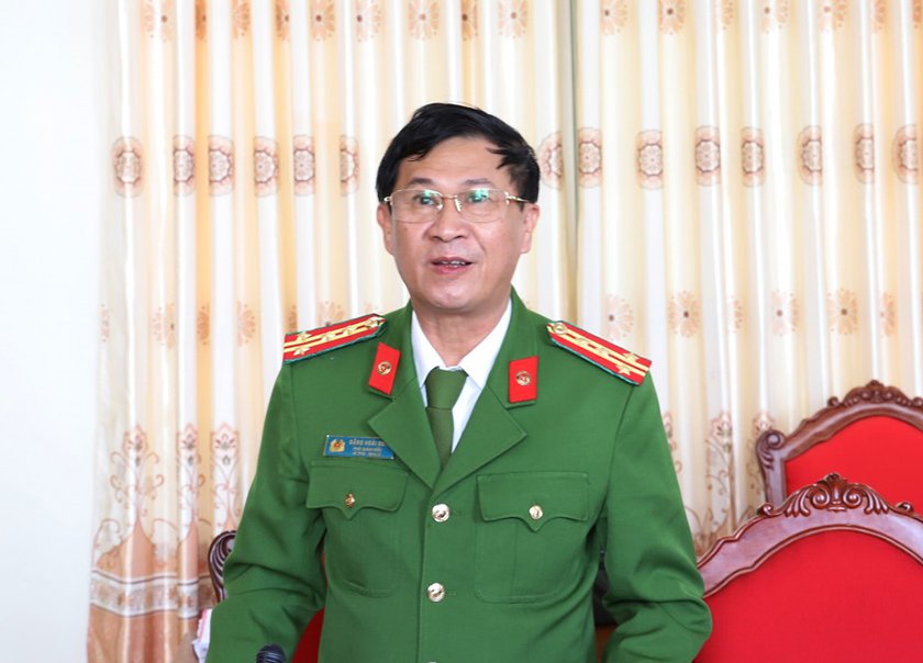 Đại tá Đặng Hoài Sơn - Phó Giám đốc Công an tỉnh phát biểu ý kiến tại tọa đàm |