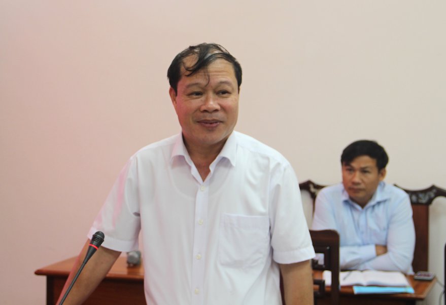 | Chủ tịch UBND thị xã Kỳ Anh Nguyễn Hoài Sơn báo cáo và làm rõ một số nội dung về công tác tuyên truyền, phổ biến, giáo dục pháp luật trên địa bàn thị xã Kỳ Anh |