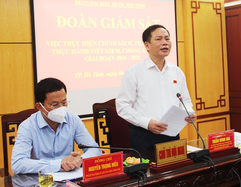 Phát biểu kết luận buổi làm việc, Phó Trưởng đoàn chuyên trách Đoàn ĐBQH tỉnh Trần Đình Gia đánh giá cao việc chấp hành chính sách, pháp luật về thực hành tiết kiệm, chống lãng phí của các cơ quan, đơn vị trên địa bàn thành phố Hà Tĩnh trong thời gian qua. Thời gian tới, ngoài khắc phục khó khăn để tháo gỡ các vấn đề còn hạn chế thì thành phố Hà Tĩnh cần tiếp thu các ý kiến góp ý của các thành viên đoàn giám sát đối với từng lĩnh vực cụ thể để thực hành tiết kiệm, chống lãng phí tốt hơn, hiệu quả hơn