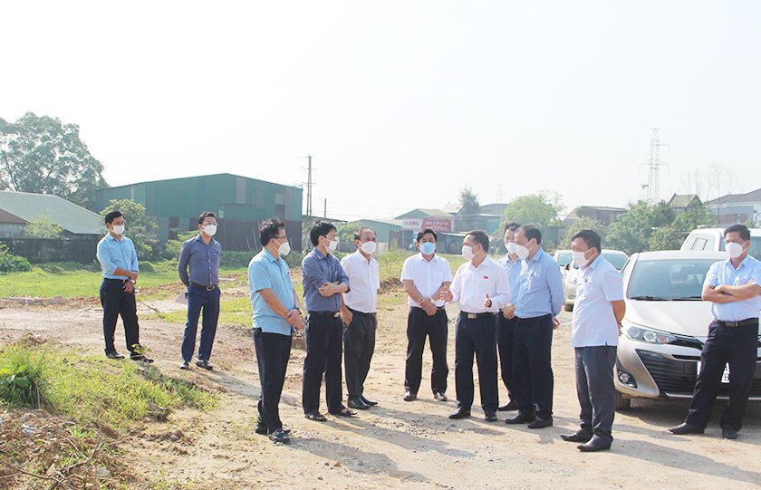 Trước buổi làm việc, Đoàn giám sát chuyên đề đã đi kiểm tra thực tế tại các công trình, dự án trên địa bàn như: Công trình Trụ sở Bảo hiểm xã hội thành phố Hà Tĩnh (củ), khu tập thể Sở Công thương và Sở Xây dựng (tại phường Tân Giang); Công ty TNHH Nước giải khát và bia Hà Tĩnh (phường Văn Yên); dự án đường Lê Duẩn kéo dài (phường Hà Huy Tập); dự án khách sạn của Công ty TNHH Đông Á (phường Trần Phú)...