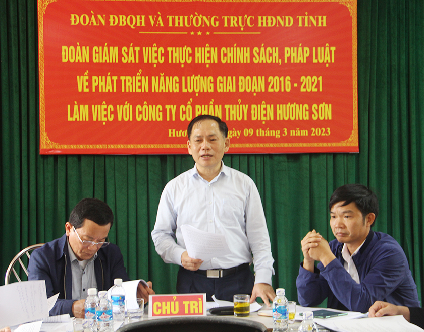 Tại buổi làm việc, đoàn giám sát đã nghe lãnh đạo Công ty CP Thủy điện Hương Sơn báo cáo về việc thực hiện các chính sách, pháp luật về phát triển năng lượng giai đoạn 2016 – 2021. Theo đó, Nhà máy thủy điện Hương Sơn (xã Sơn Kim 1, Hương Sơn) đưa vào khai thác từ năm 2011, các hạng mục công trình vận hành ổn định, an toàn. Nhà máy có công suất 33MW với 2 tổ máy, bình quân mỗi năm sản xuất khoảng 120 triệu kWh, doanh thu khoảng 130 tỷ đồng, nộp ngân sách khoảng 28 tỷ đồng; tạo việc làm cho hơn 50 lao động với thu nhập ổn định. Thời gian qua, công ty luôn thực hiện đầy đủ các nghĩa vụ về thuế và phí cấp quyền khai thác tài nguyên nước, phí dịch vụ môi trường rừng theo quy định.