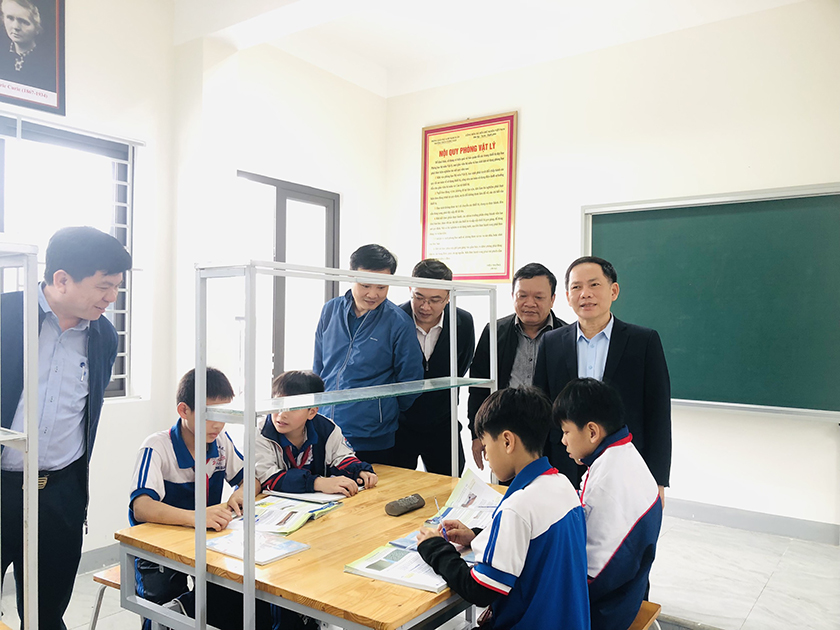 | Đoàn tiến hành giám sát tại Trường THCS xã Cương Gián |