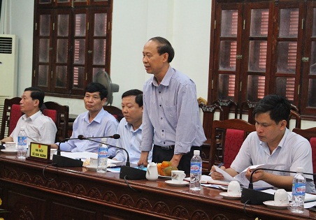 | Đại biểu Trần Đình Gia, Chủ tịch Hội Nông dân tỉnh phát biểu tại cuộc làm việc với lãnh đạo UBND huyện Can lộc |