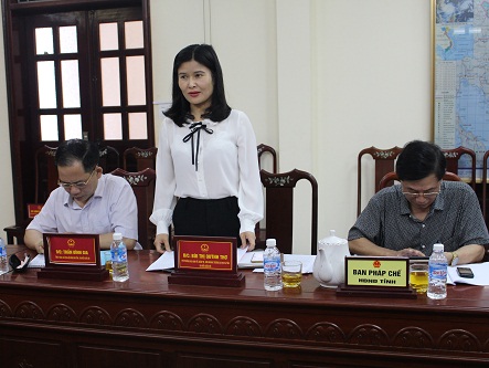 | Đại biểu Bùi Thị Quỳnh Thơ phát biểu tại cuộc làm việc với lãnh đạo UBND huyện Lộc Hà |