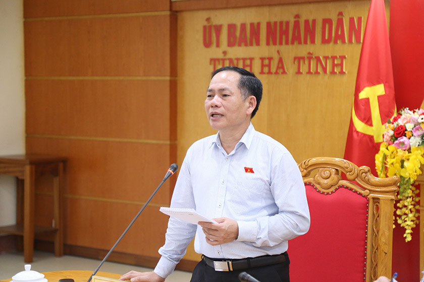 | Phó Trưởng đoàn chuyên trách Đoàn ĐBQH tỉnh Hà Tĩnh Trần Đình Gia phát biểu kết luận tại cuộc làm việc |