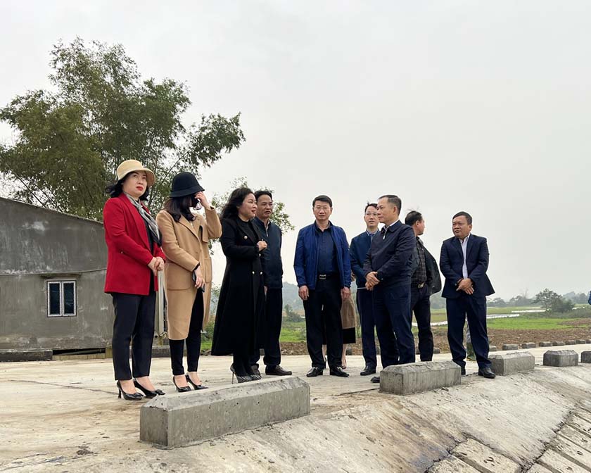 Trước khi làm việc, các thành viên Đoàn giám sát đã trực tiếp khảo sát Khu tái định cư xã Quang Vĩnh và Dự án Kè bảo vệ bờ sông Ngàn Sâu đoạn qua xã Hòa Lạc, huyện Đức Thọ.