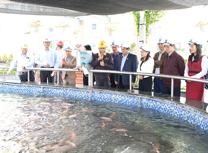 | Đoàn kiểm tra tại Hồ Sinh học của Công ty |