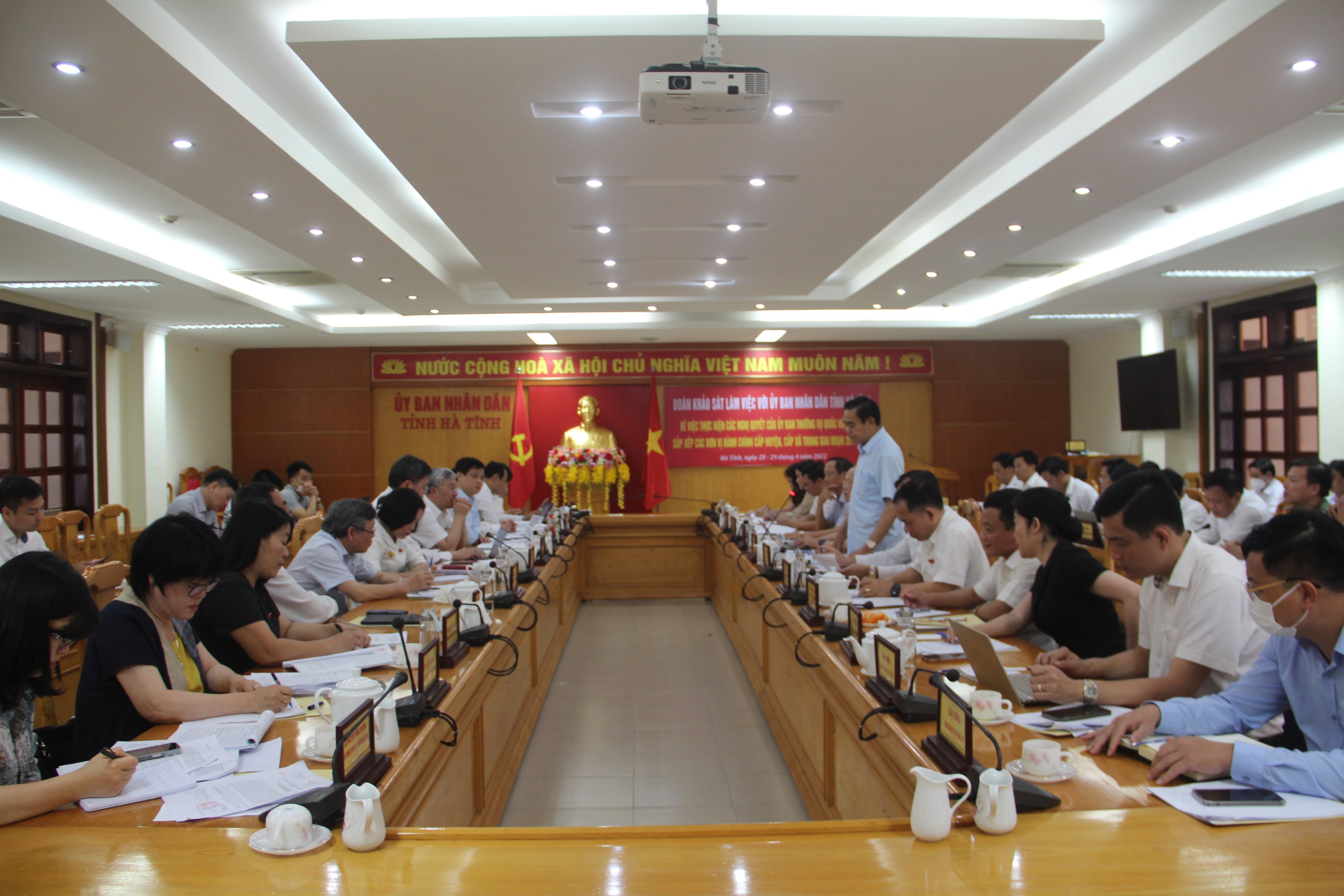 Báo cáo tại cuộc làm việc, Phó Chủ tịch Thường trực UBND tỉnh Đặng Ngọc Sơn cho biết: Việc thực hiện sắp xếp các ĐVHC cấp xã trên địa bàn tỉnh Hà Tĩnh được tiến hành trên cơ sở được sự quan tâm, chỉ đạo sát sao của Trung ương, sự đồng thuận cao và sự vào cuộc của cả hệ thống chính trị từ tỉnh đến cơ sở; cấp ủy, chính quyền địa phương các cấp đã nghiêm túc, quyết liệt triển khai thực hiện theo quy định, hướng dẫn. Quá trình thực hiện, địa phương đã chú trọng đến công tác dân vận, tuyên truyền, vận động cán bộ, công chức, viên chức và đặc biệt là Nhân dân tại các đơn vị thực hiện sắp xếp đồng thuận chủ trương sắp xếp của Đảng, Nhà nước và đã được sự ủng hộ rất cao.