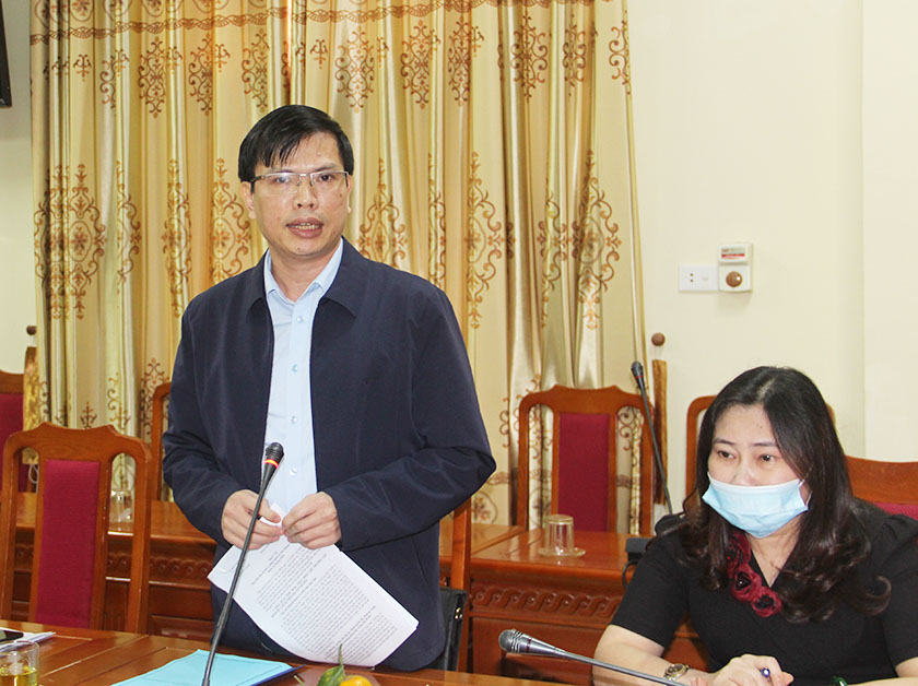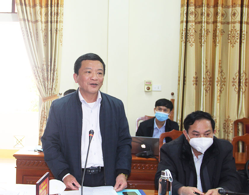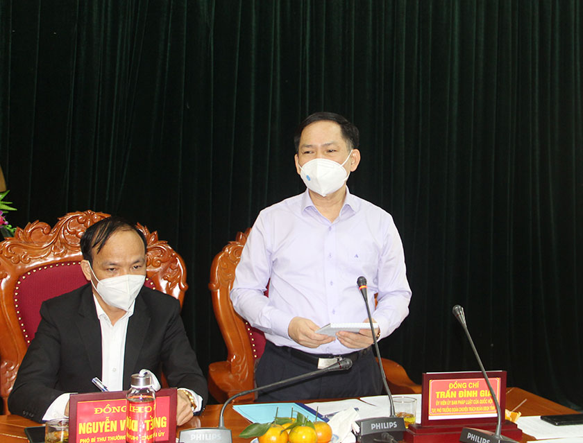 | Phó Trưởng đoàn chuyên trách Đoàn ĐBQH tỉnh Trần Đình Gia phát biểu tại buổi làm việc |