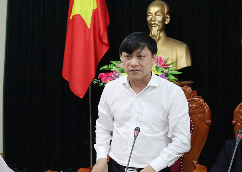 | Phó Trưởng đoàn chuyên trách Đoàn ĐBQH tỉnh Trần Đình Gia phát biểu tại buổi làm việc |