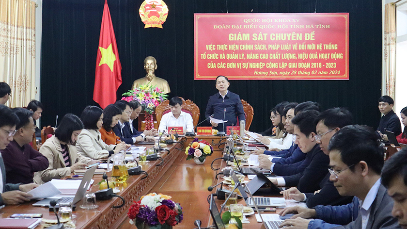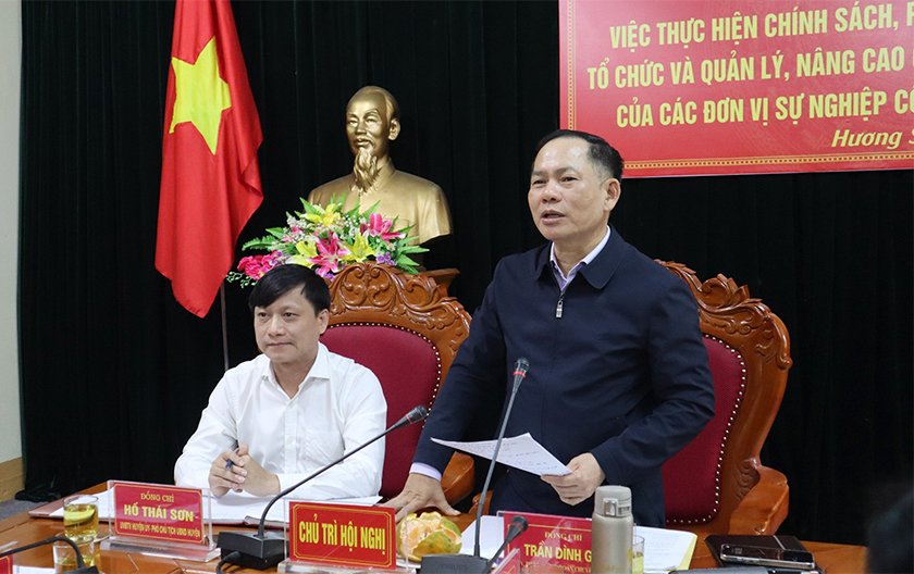 Phát biểu tại buổi làm việc, Phó Trưởng đoàn chuyên trách Đoàn ĐBQH tỉnh Trần Đình Gia ghi nhận, đánh giá cao nỗ lực của huyện Hương Sơn trong việc triển khai thực hiện chính sách, pháp luật về đổi mới hệ thống tổ chức và quản lý, nâng cao chất lượng, hiệu quả hoạt động của các đơn vị sự nghiệp công lập. Phó Trưởng đoàn chuyên trách Đoàn ĐBQH Hà Tĩnh cũng tiếp thu các kiến nghị, đề xuất của huyện Hương Sơn Đối với các kiến nghị thuộc thẩm quyền Trung ương, đoàn sẽ tổng hợp và phản ánh kịp thời lên các diễn đàn. Các đề xuất thuộc thầm quyền tỉnh, đoàn sẽ có kiến nghị để xem xét, giải quyết.