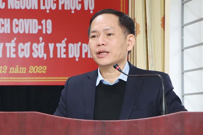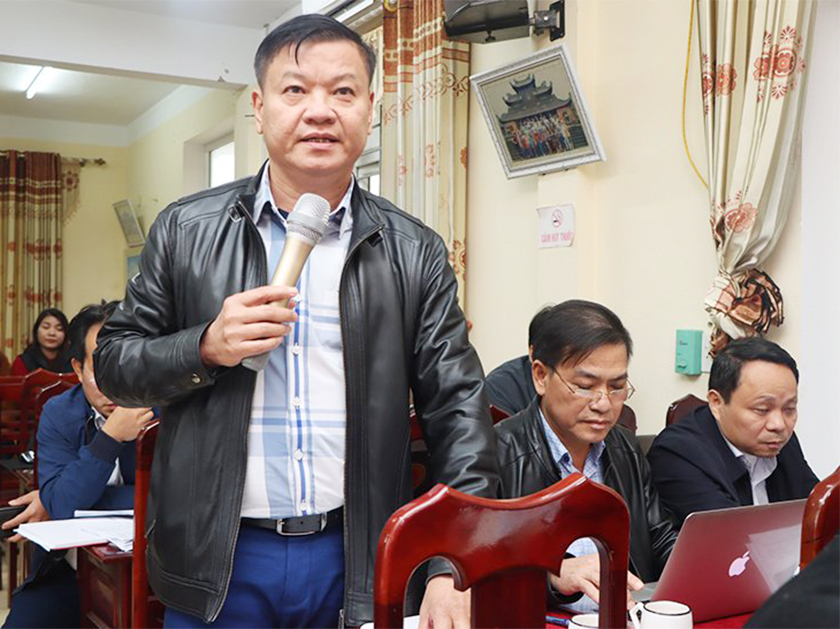 | Giám đốc Trung tâm y tế huyện Cẩm Xuyên Trần Huy Nghĩa báo cáo kết quả cũng những vướng mắc, bất cập của huyện |