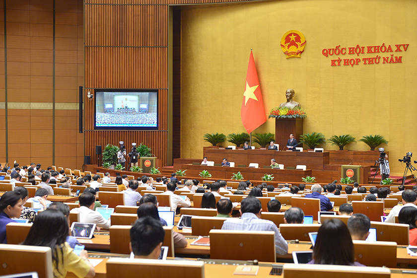 Toàn cảnh phiên họp xem xét thông qua Nghị quyết thành lập Đoàn giám sát tại Kỳ họp thứ 5, Quốc hội khoá XV |