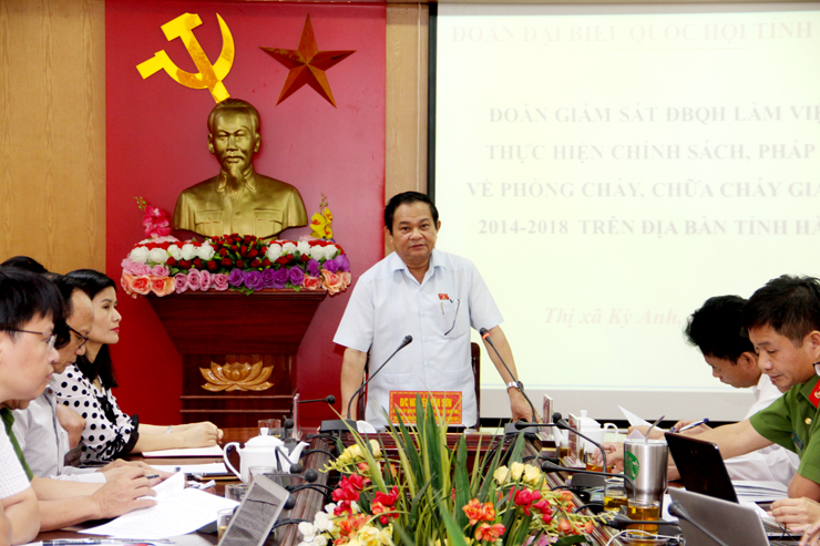 Kết luận tại các đơn vị, Phó Trưởng Đoàn ĐBQH tỉnh Nguyễn Văn Sơn đánh giá cao việc thực hiện chính sách, pháp luật về phòng cháy, chữa cháy của thị xã Kỳ Anh và Tổng kho xăng dầu, dầu khí Vũng Áng. Đồng thời lưu ý một số vấn đề như: Tiếp tục tăng cường công tác tuyên truyền cho cá nhân, tổ chức, doanh nghiệp trên địa bàn về công tác PCCC; thường xuyên kiểm tra, rà soát các trang thiết bị PCCC; làm rõ nguyên nhân các vụ cháy đã xảy ra, từ đó làm rõ trách nhiệm của các cá nhân, tổ chức trong việc để xảy ra các vụ cháy; quan tâm bố trí kinh phí PCCC; thực hiện nghiêm các quy trình, quy định PCCC; phối hợp chặt chẽ với các lực lượng liên quan để thực hiện tốt công tác PCCC.