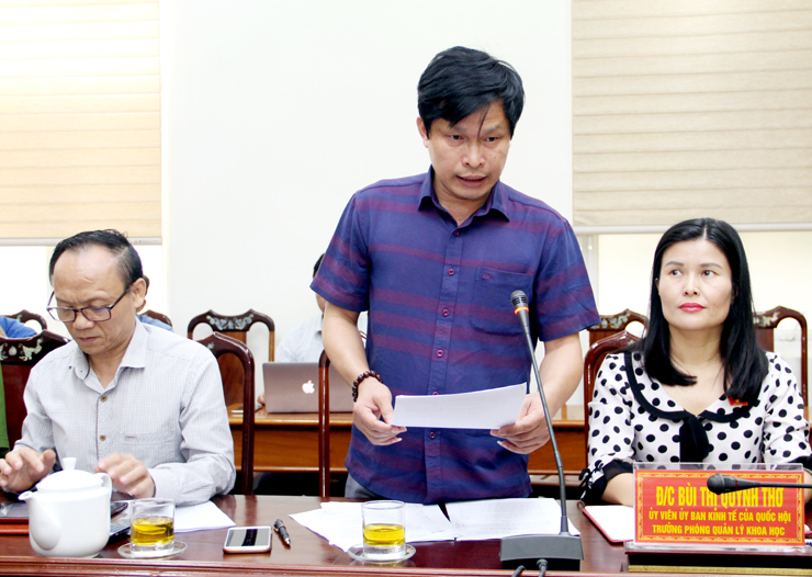 Phó Trưởng Đoàn ĐBQH tỉnh Nguyễn Văn Sơn phát biểu tại cuộc làm việc với UBND thị xã Kỳ Anh