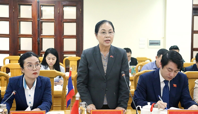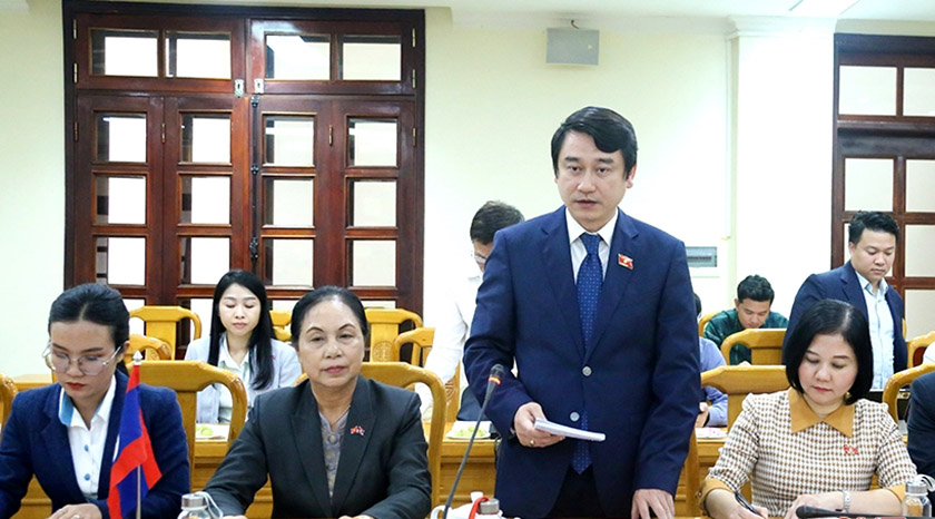 | Đồng chí Vandy Bouthasavong - Phó Chủ nhiệm Ủy ban Đối ngoại Quốc hội Lào phát biểu |