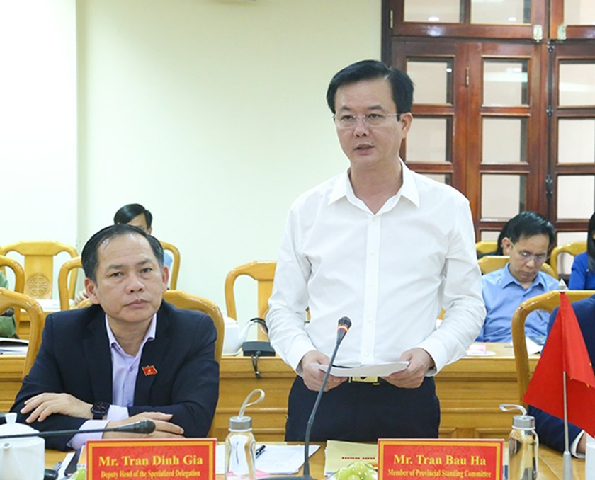 Tại buổi làm việc với Đoàn, Phó Chủ tịch UBND tỉnh Trần Báu Hà đã thông tin một số nét khái quát về tình hình phát triển kinh tế - xã hội tỉnh Hà Tĩnh đầu năm 2023. Về kết quả hợp tác với Lào, trong thời gian qua, tỉnh Hà Tĩnh luôn quan tâm duy trì, củng cố mối quan hệ hữu nghị vĩ đại, đoàn kết đặc biệt và hợp tác toàn diện với các địa phương của bạn.