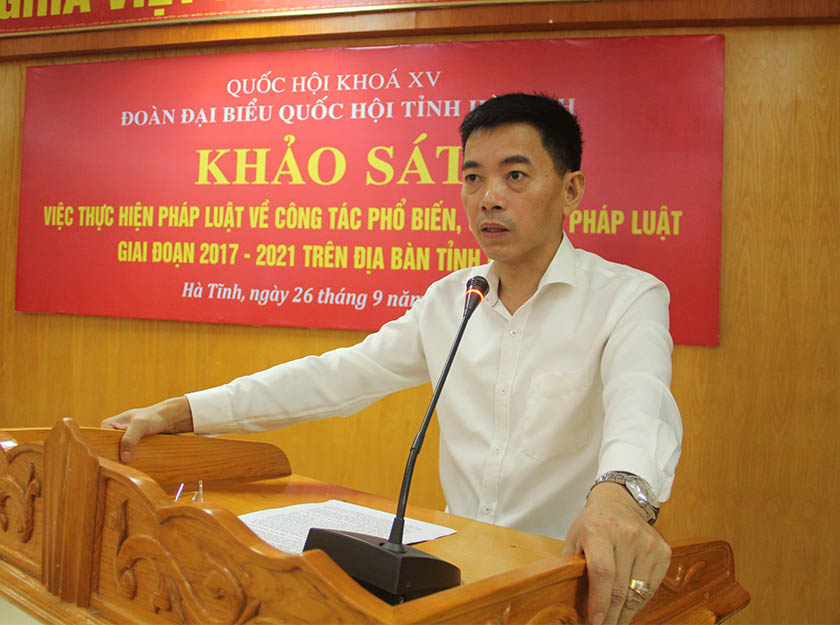 Phát biểu kết luận tại buổi làm việc, Phó Trưởng đoàn ĐBQH tỉnh Trần Đình Gia đánh giá thời gian qua, UBND tỉnh đã chỉ đạo các địa phương, đơn vị thực hiện hiệu quả công tác PBGDPL. Nội dung PBGDPL chú trọng các vấn đề mang tính thời sự, thiết yếu, được xã hội quan tâm; công tác tuyên truyền được đổi mới, đa dạng dưới nhiều hình thức.