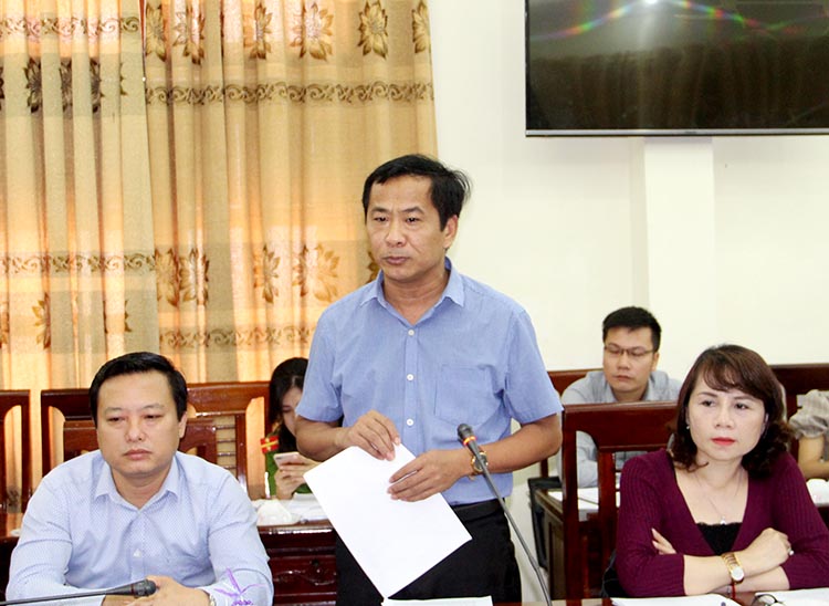 Phó Trưởng Đoàn phụ trách Đoàn ĐBQH tỉnh Nguyễn Văn Sơn phát biểu tại cuộc làm việc
