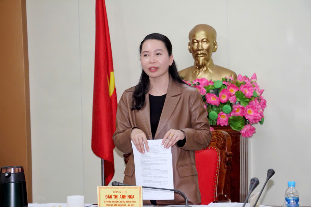 Sáng 14/02/2025, Trưởng ban Văn hóa - Xã hội Hội đồng nhân dân (HĐND) tỉnh Đào Thị Anh Nga đã chủ trì làm việc với Sở Tài nguyên và Môi trường về tờ trình, dự thảo Nghị quyết quy định chính sách hỗ trợ về đất đai đối với đồng bào dân tộc thiểu số sinh sống trên địa bàn tỉnh Hà Tĩnh. Cùng dự có Phó Chủ tịch HĐND tỉnh Trần Văn Kỳ; lãnh đạo và các Ủy viên Ban Văn hóa - Xã hội HĐND tỉnh, lãnh đạo các Ban HĐND tỉnh, đại diện Ủy ban Mặt trận Tổ quốc Việt Nam tỉnh và các sở: Tư pháp, Tài chính…