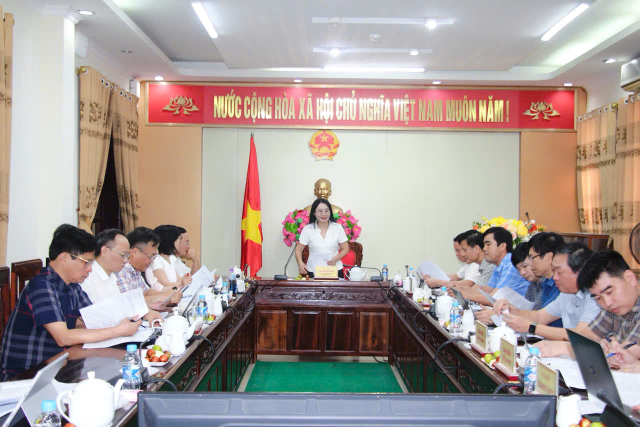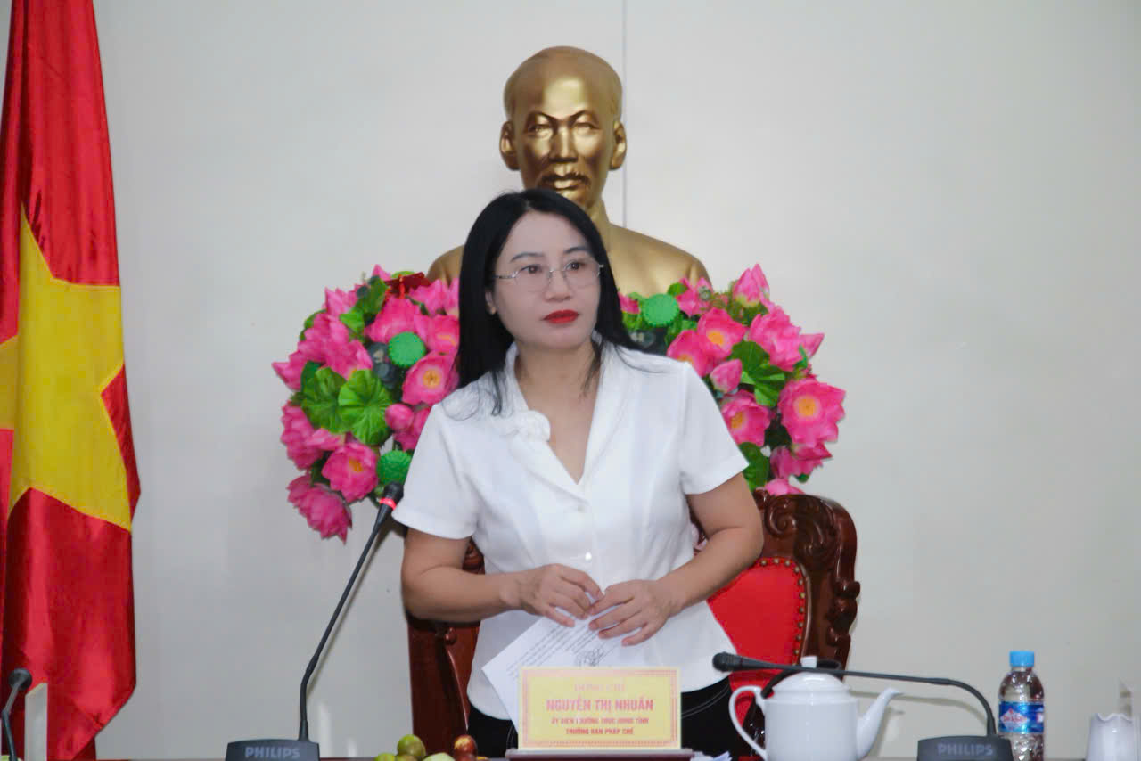 Ủy viên Thường trực, Trưởng ban Pháp chế HĐND tỉnh Nguyễn Thị Nhuần chủ trì cuộc làm việc.