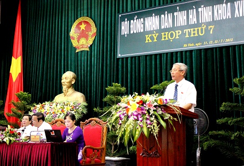 | Đồng chí Đoàn Đình Anh - Trưởng ban Văn hóa - Xã hội HĐND tỉnh phát biểu tại kỳ họp thứ 7, HĐND tỉnh khóa XVI, nhiệm kỳ 2011-2016 |
