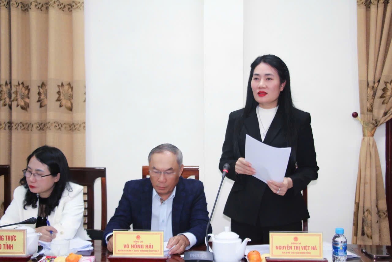 | Đồng chí Nguyễn Thị Việt Hà, Ủy viên Ban Chấp hành Đảng bộ tỉnh, Phó Chủ tịch Hội đồng nhân dân tỉnh phát biểu |