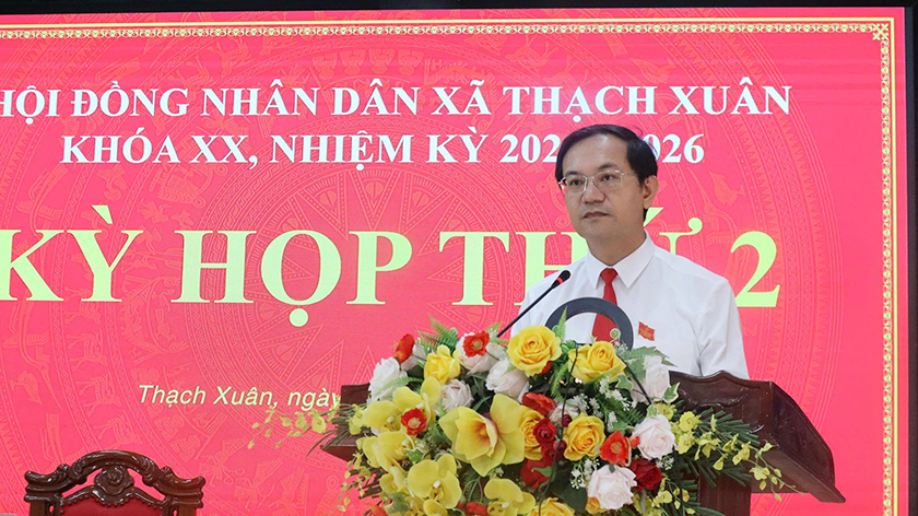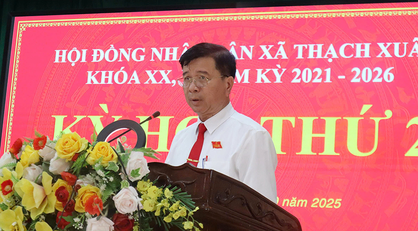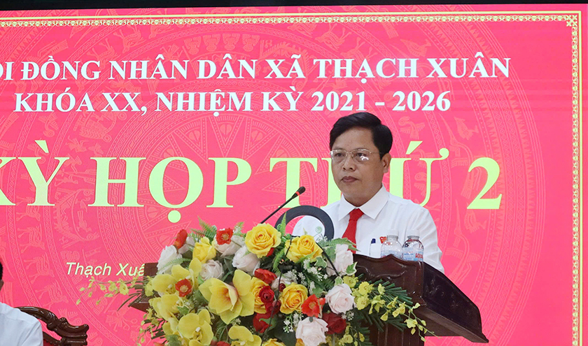 Bí thư Đảng ủy, Chủ tịch HĐND xã Thạch Xuân Nguyễn Bá Hà phát biểu mạc kỳ họp