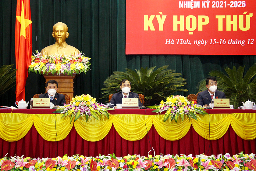 Về tình hình KTXH năm 2021, các đại biểu HĐND tỉnh cho rằng: Trong bối cảnh gặp nhiều khó khăn thách thức, đặc biệt do tác động của dịch COVID-19 nhưng Hà Tĩnh cơ bản kiểm soát tốt. Tỉnh đã kịp thời cụ thể hóa Nghị quyết Đại hội Đảng bộ tỉnh lần thứ XIX thành các nội dung, chương trình cụ thể, trình Ban Chấp hành Đảng bộ tỉnh ban hành 07 Nghị quyết về phát triển Khu kinh tế Vũng Áng, tập trung tích tụ ruộng đất, xây dựng tỉnh đạt chuẩn nông thôn mới, nâng cao hiệu quả hoạt động doanh nghiệp, chuyển đổi số, đảm bảo an ninh trật tự, khắc phục thiên tai; xây dựng cơ chế huy động nguồn lực phát triển hạ tầng đô thị thành phố Hà Tĩnh, thị xã Hồng Lĩnh, thị xã Kỳ Anh; tập trung huy động nguồn lực, tháo gỡ khó khăn vướng mắc, đẩy nhanh tiến độ triển khai các dự án trọng điểm; thu hút đầu tư phát triển chuỗi du lịch ven biển... Tăng trưởng kinh tế đạt khá so với bình quân chung cả nước. Thu ngân sách và kim ngạch xuất khẩu đạt kết quả cao nhất từ trước đến nay. Giải ngân vốn đầu tư công nằm trong nhóm đầu của cả nước. Sản xuất công nghiệp phục hồi và tăng trưởng khá. Sản xuất nông nghiệp được mùa toàn diện; dịch bệnh gia súc, gia cầm cơ bản được khống chế; chuyển đổi số, phát triển kinh tế số trong nông nghiệp bước đầu đạt kết quả tích cực; có thêm sản phẩm OCOP xuất khẩu. Cải cách hành chính gắn với cải thiện môi trường đầu tư kinh doanh tiếp tục được quan tâm chỉ đạo. Thu hút đầu tư tiếp tục có bước chuyển biến tích cực , nhiều tập đoàn lớn khảo sát, nghiên cứu đầu tư vào Hà Tĩnh. Thực hiện tốt các hoạt động an sinh xã hội. Huy động hiệu quả nguồn lực xã hội hóa trong công tác phòng, chống dịch COVID-19, khắc phục hậu quả thiên tai, hỗ trợ học sinh có hoàn cảnh khó khăn. An ninh chính trị, trật tự an toàn xã hội được đảm bảo.