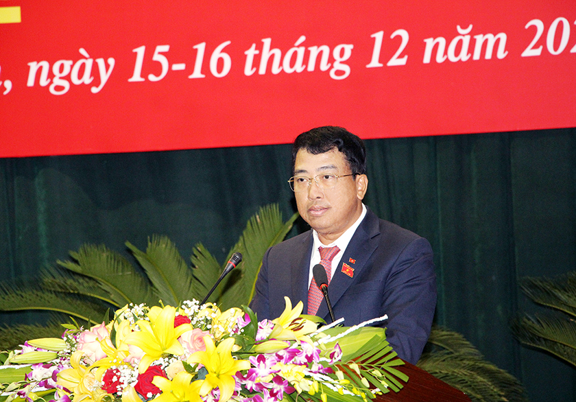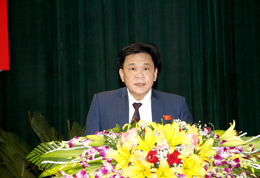 Bí thư Tỉnh ủy, Chủ tịch HĐND tỉnh Hoàng Trung Dũng; Phó Chủ tịch Thường trực HĐND tỉnh Trần Tú Anh; Phó Chủ tịch HĐND tỉnh Trần Văn Kỳ điều hành phiên thảo luận Hội trường.