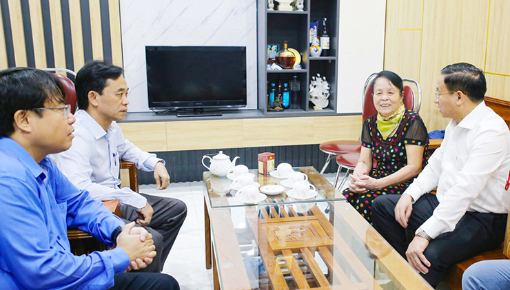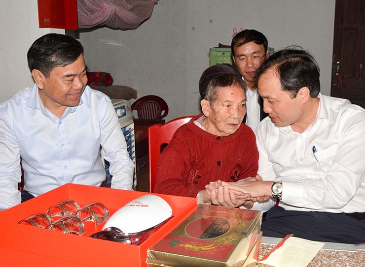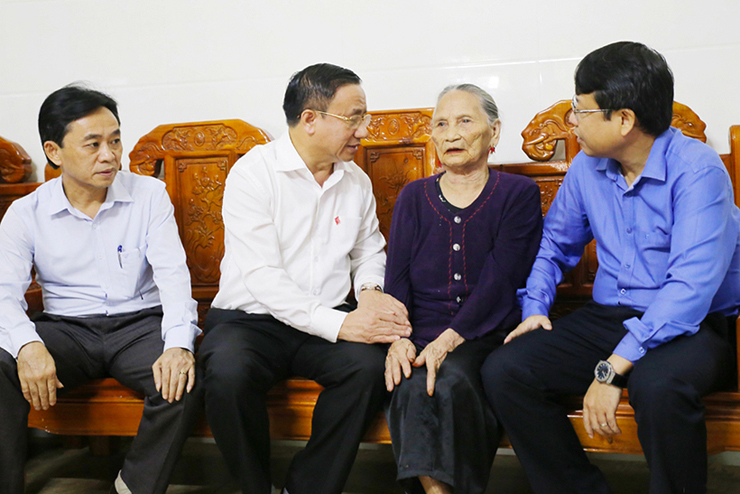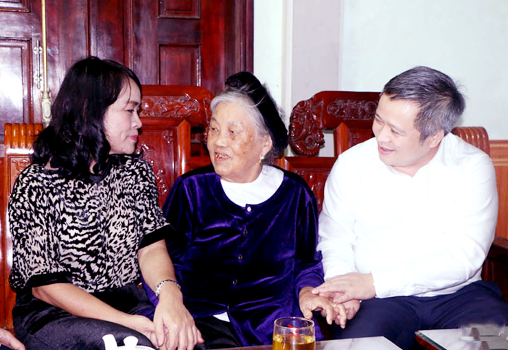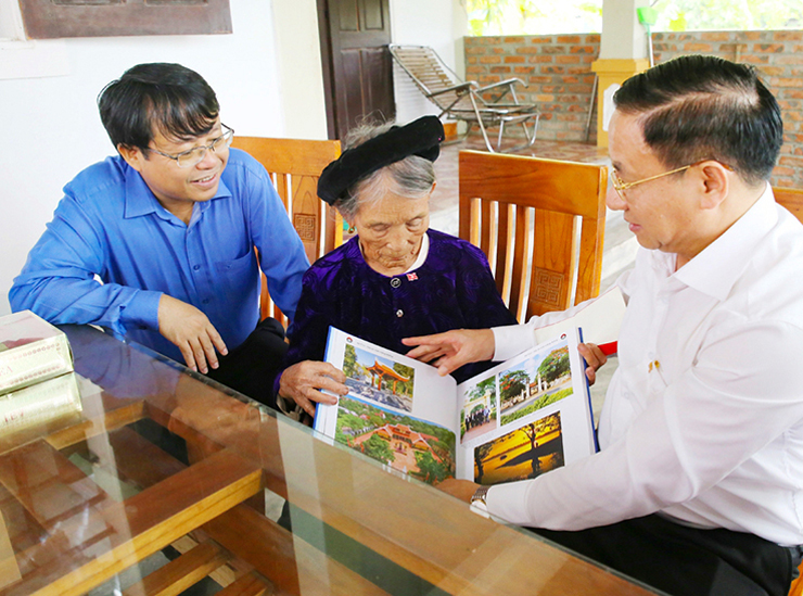 Bí thư Tỉnh ủy Lê Đình Sơn ân cần thăm hỏi sức khỏe, giới thiệu với mẹ Nguyễn Thị Ả về những đổi thay của quê hương sau chặng đường 5 năm.