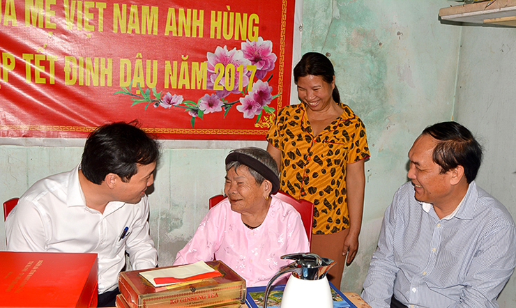 Thăm và tặng quà các Mẹ VNAH, Anh hùng LLVT Nhân dân, Phó Bí thư Thường trực Tỉnh ủy Hoàng Trung Dũng đã ân cần hỏi thăm sức khỏe, đời sống, đồng thời bày tỏ lòng biết ơn sâu sắc đối với những đóng góp, hy sinh của các Mẹ VNAH, Anh hùng LLVT Nhân dân.