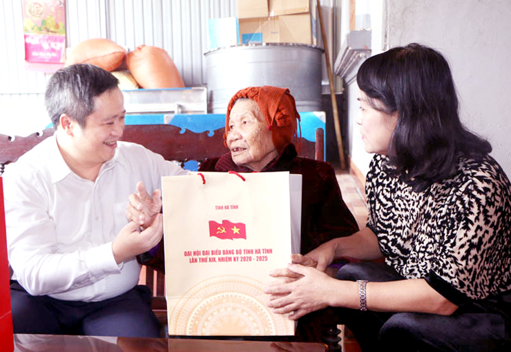 * Tại các địa bàn thành phố Hà Tĩnh và Thạch Hà, Chủ tịch UBND tỉnh Trần Tiến Hưng, Phó Chủ tịch Thường trực HĐND tỉnh Nguyễn Thị Nữ Y cũng đã đi tặng quà các Mẹ VNAH, Anh hùng LLVT, Anh hùng Lao động trong kháng chiến. Cùng đi có và lãnh đạo các địa phương.